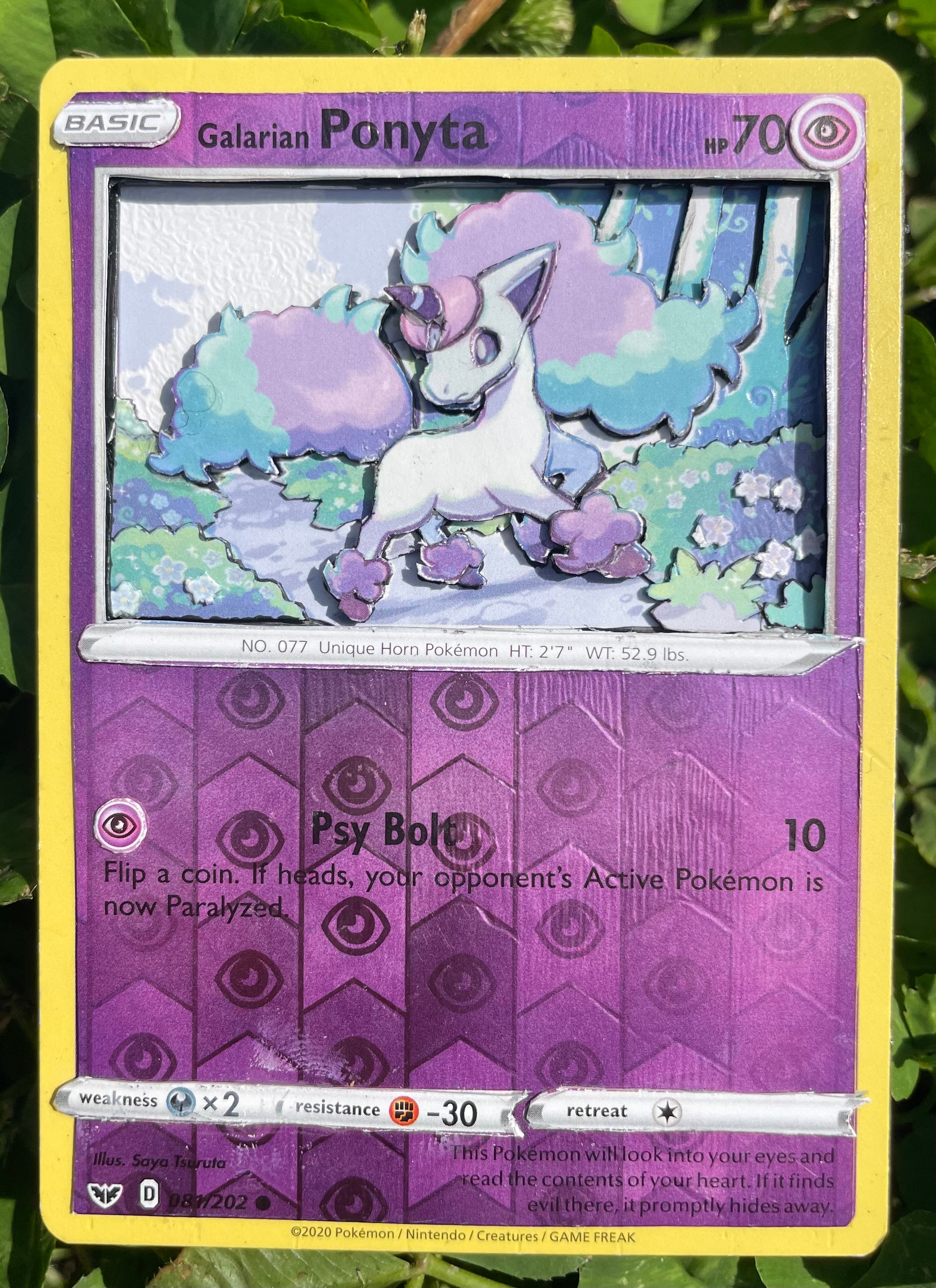 Handmade 3D Holofoil Galarian Ponyta Trading Card, Altered Trading Card for Nostalgic Gift, Gift for Pokémon Lovers