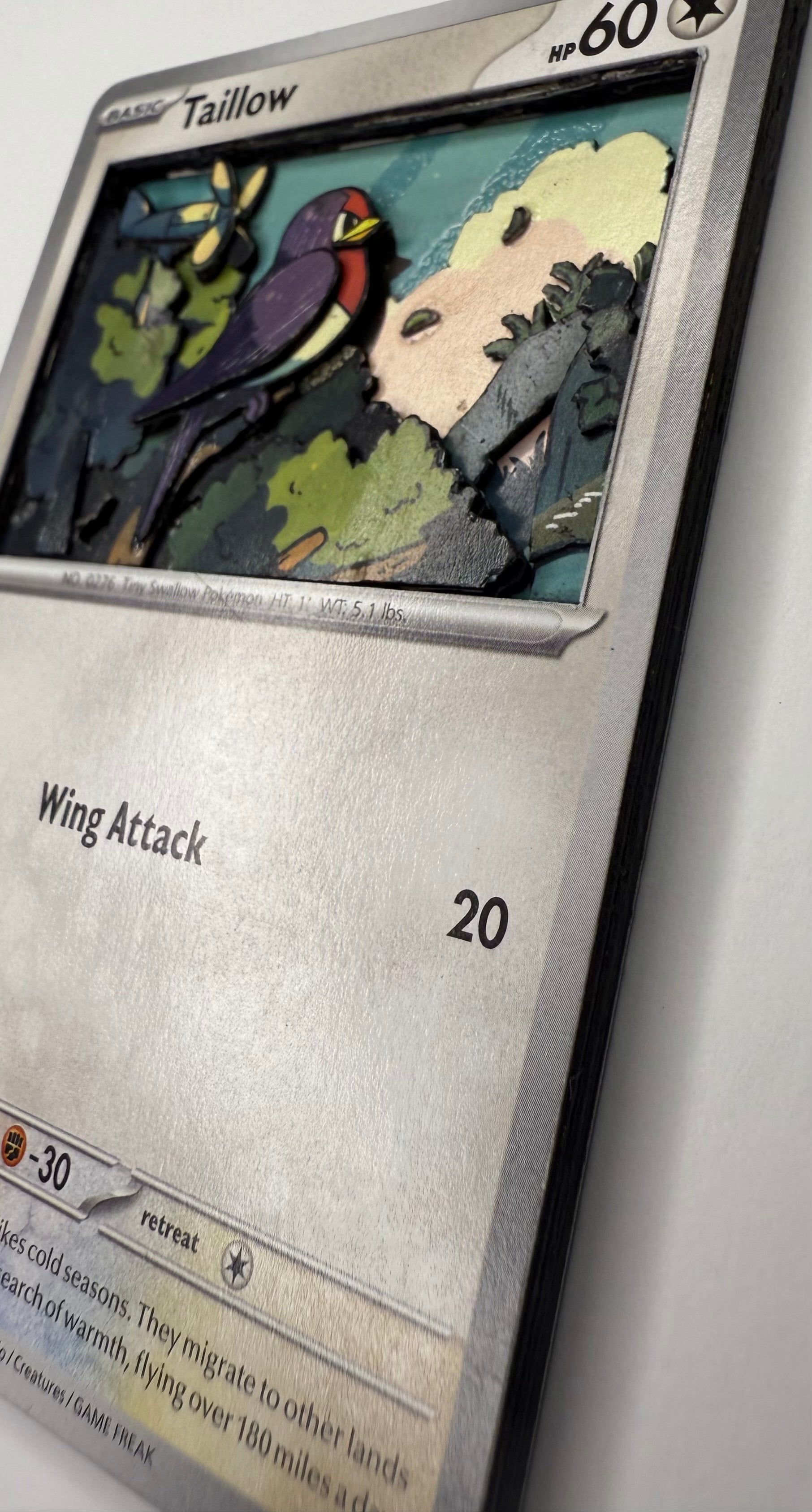 Handmade 3D Taillow Trading Card, Altered Trading Card for Nostalgic Gift, Gift for Pokémon Lovers