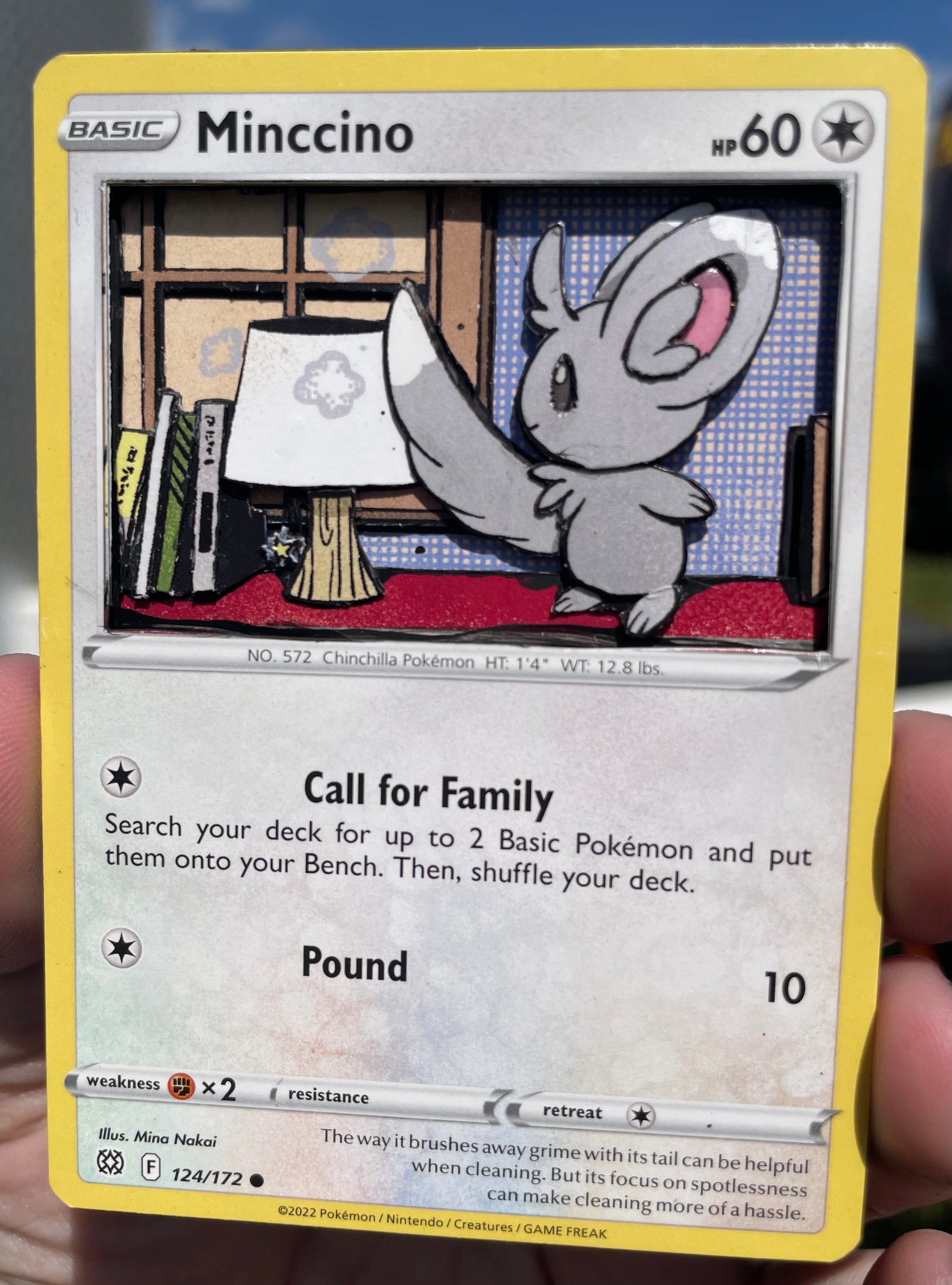Handmade 3D Minccino Trading Card, Altered Trading Card for Nostalgic Gift, Gift for Pokémon Lovers