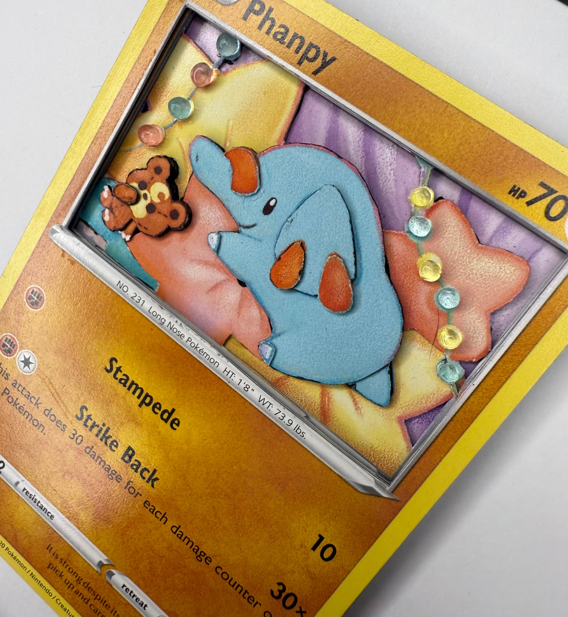 Handmade 3D Phanpy Trading Card, Altered Trading Card for Nostalgic Gift, Gift for Pokémon Lovers