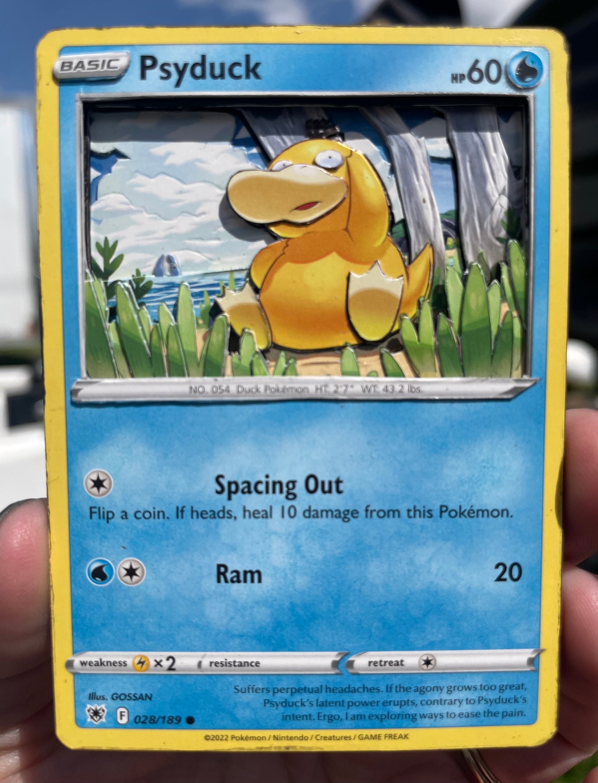 Handmade 3D Psyduck Trading Card, Altered Trading Card for Nostalgic Gift, Gift for Pokémon Lovers