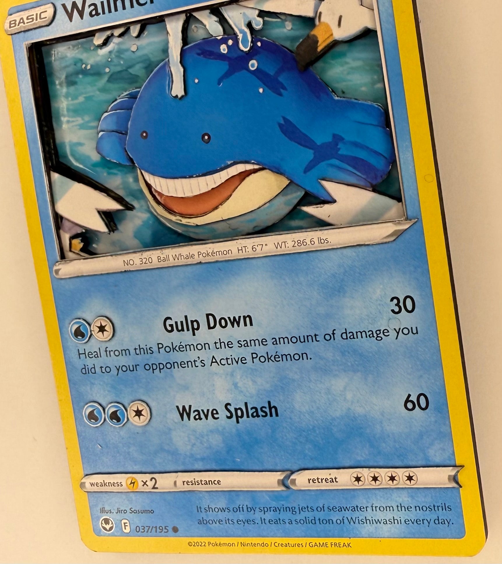 Handmade 3D Wailmer Trading Card, Altered Trading Card for Nostalgic Gift, Gift for Pokémon Lovers